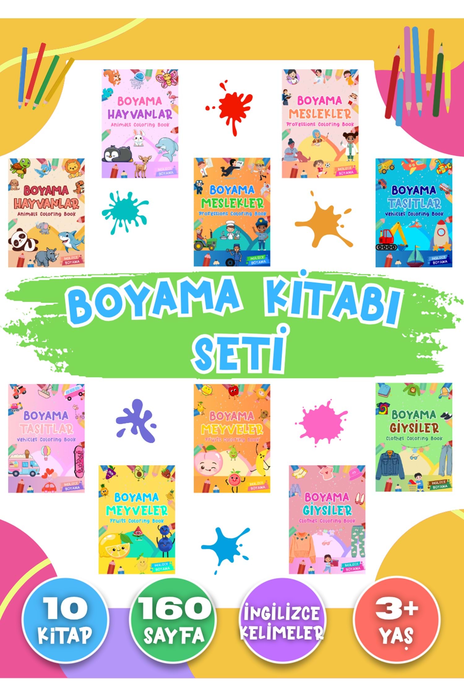 - Özellikler: 10 kitap, 160 sayfa, koparılabilir boyama sayfaları, İngilizce kelimelerle eğitici aktivite.