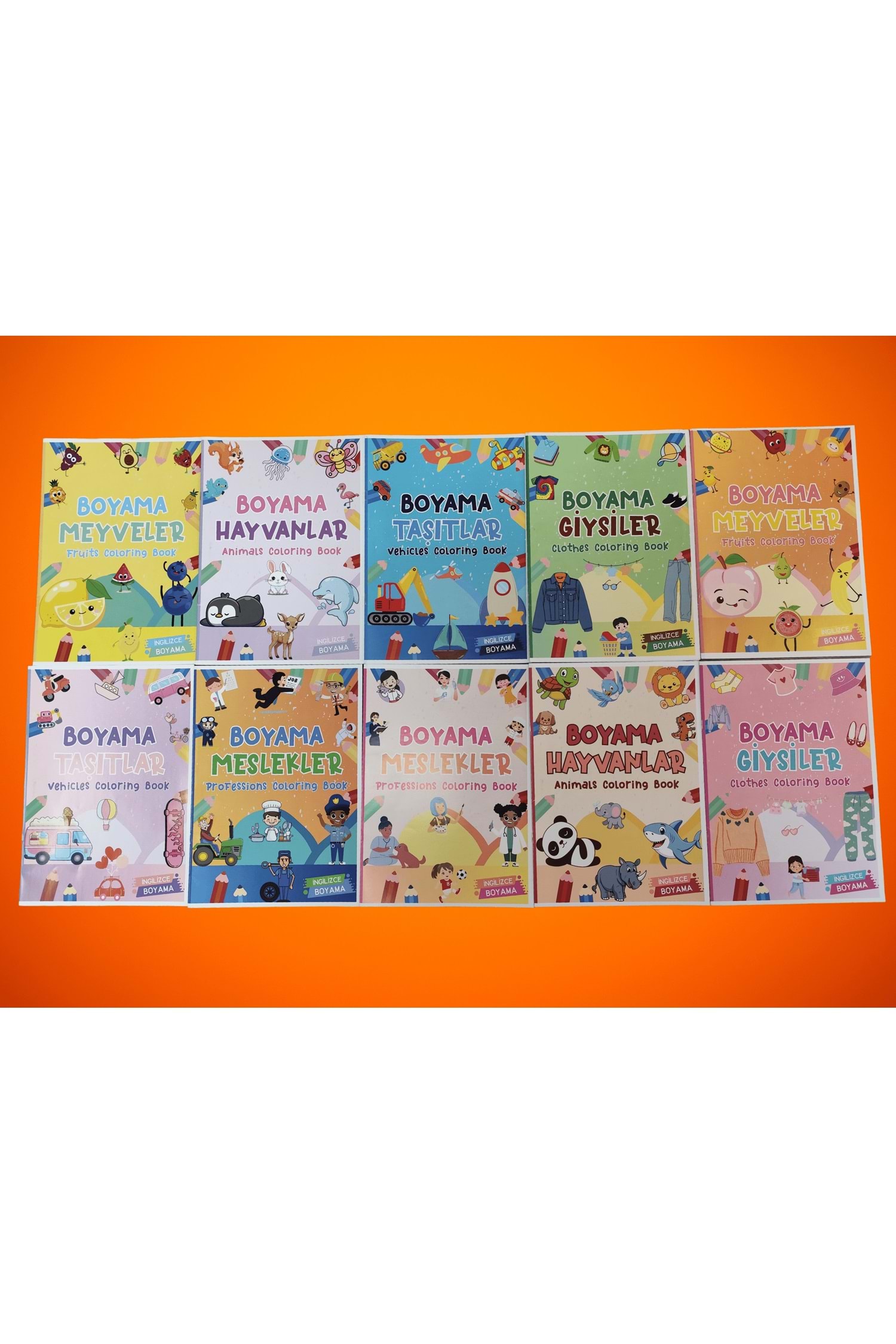 Çocuklar İçin 10’lu Boyama Kitabı Seti - İngilizce Kelimeler - 10 Kitap - 160 Sayfa