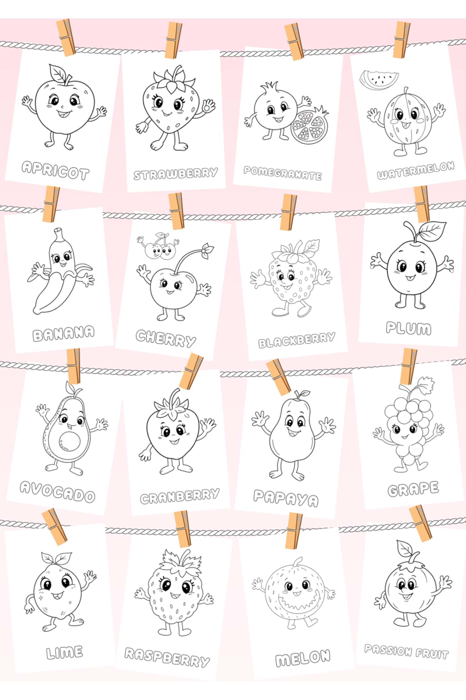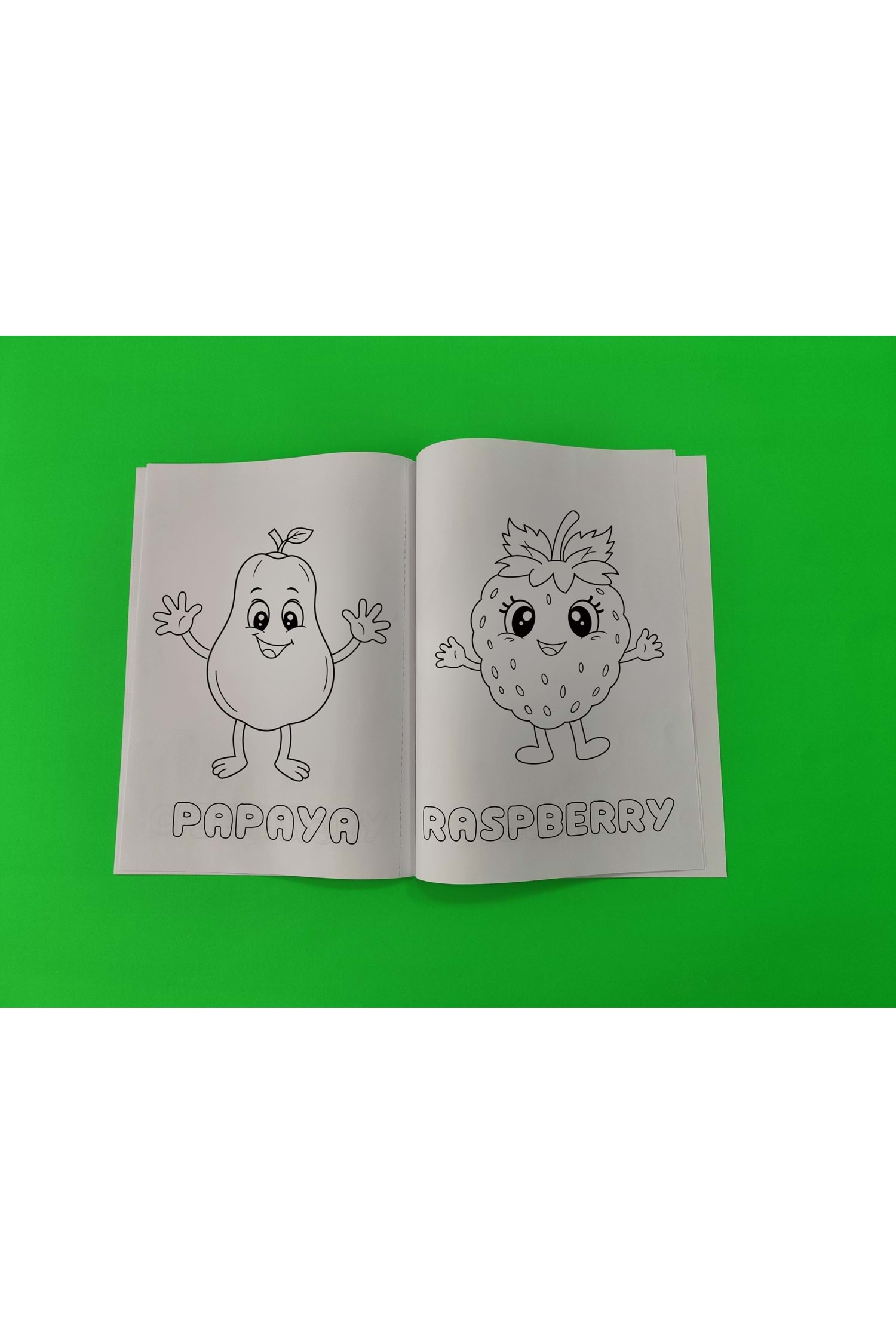 Her sayfada meyve çizimlerinin altında İngilizce kelimeler yer alıyor (örneğin, "strawberry" veya "grape"). Çocuklar boyama yaparken İngilizce öğrenir, bu da dil becerilerini geliştirmelerine destek olur. Yumuşak ve renkli meyve tasarımları, yaratıcı bir atmosfer sunar. Canlı tonlardaki kapak tasarımıyla dikkat çeken bu kitap, dayanıklı kağıtlara sahiptir.