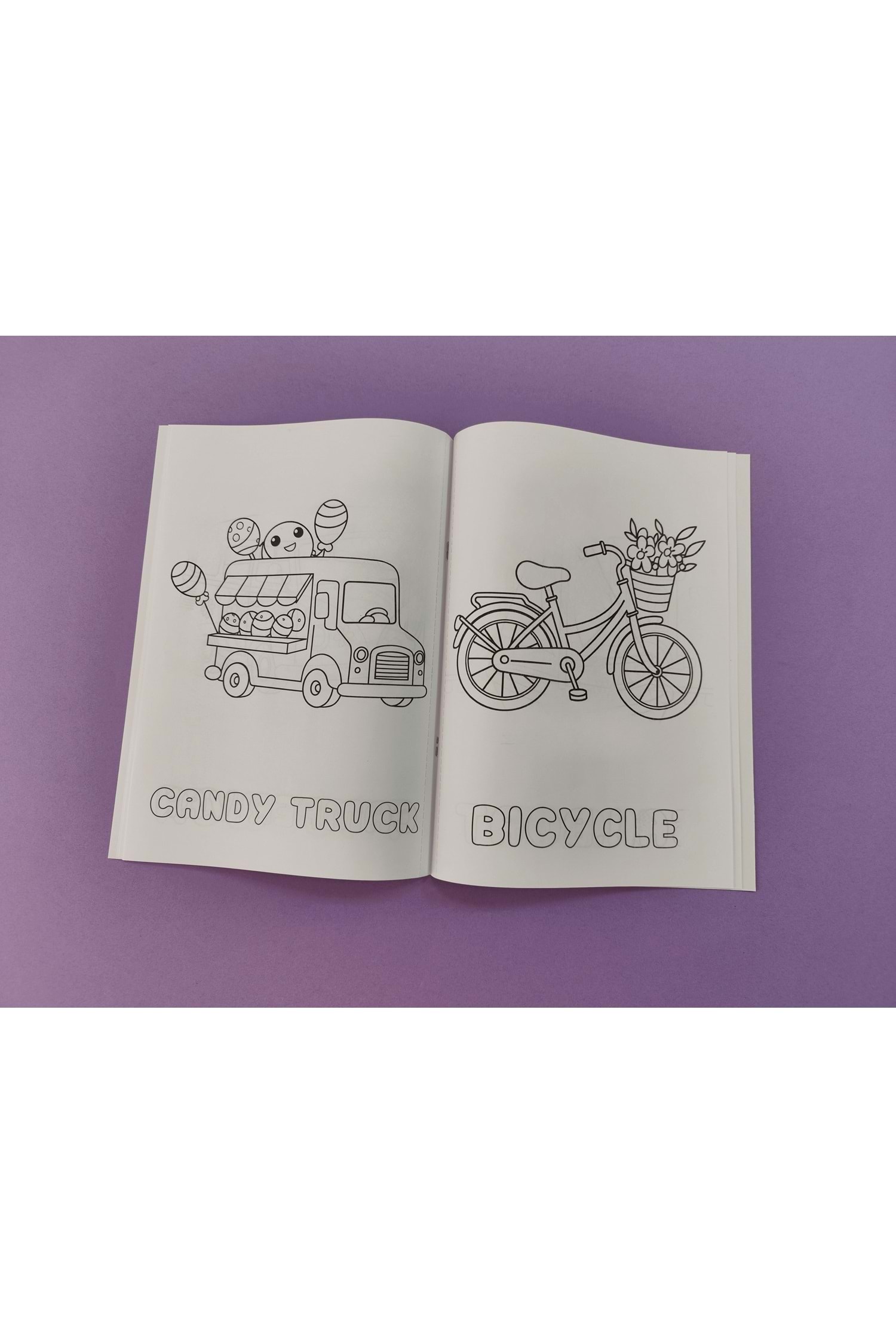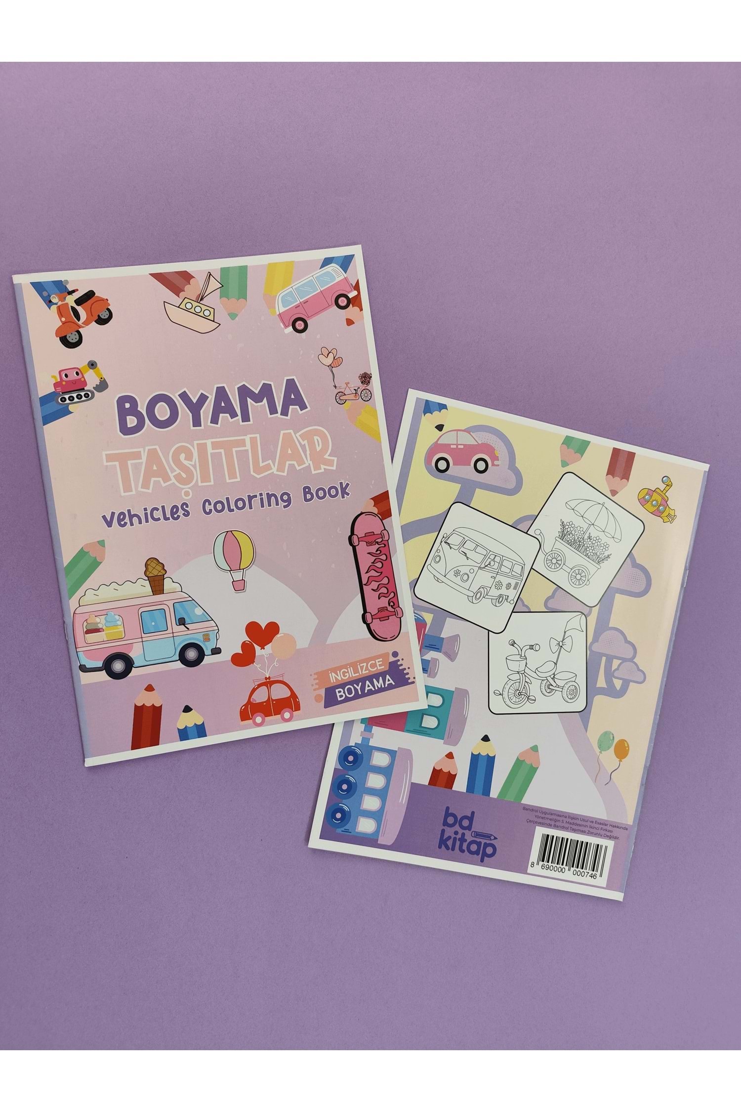 Her sayfada taşıt çizimlerinin altında İngilizce isimler yer alıyor (örneğin, "bus" veya "train"). Çocuklar boyama yaparken İngilizce öğrenir, bu da dil becerilerini geliştirmelerine destek olur. Yumuşak ve renkli taşıt tasarımları, yaratıcı bir atmosfer sunar. Canlı tonlardaki kapak tasarımıyla dikkat çeken bu kitap, dayanıklı kağıtlara sahiptir.